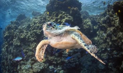 还有一位潜水大叔在海底发现被塑料卡住喉咙的海龟。