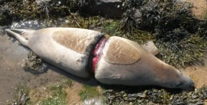 2月初,人们在挪威海滩发现一头死去的鲸鱼。