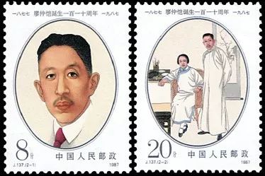 以廖仲恺、何香凝为图案作成的纪念邮票