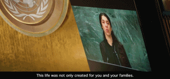 Amal接下了Nadia的案子,带着她上联合国安里泪诉:请彻底铲除ISIS。