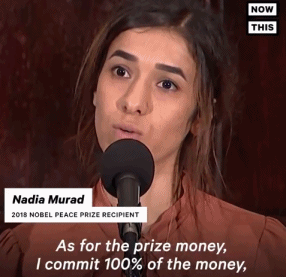 这次刚获得诺贝尔奖,Nadia转身就把50万美元奖金100%捐出去,用以打击性犯罪。