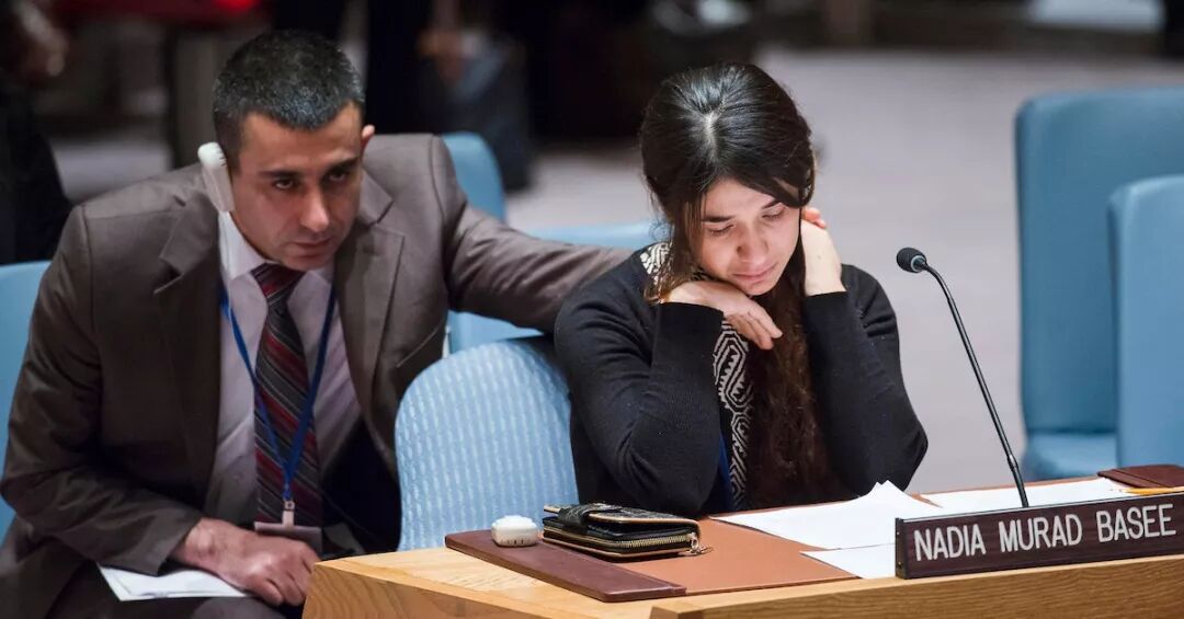 当Nadia上台讲述曾经被性侵奴役、目睹家人惨遭屠杀的遭遇时,在场的官员都红了眼眶。