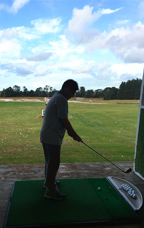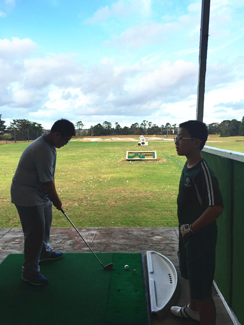 用毕晚餐,三婶又得开车带俩个弟弟去打高尔夫球,我们也跟去瞧瞧,嘿,俩个弟弟有了哥哥的陪伴竟然也无心练球,在教俩个哥哥打球时,又是那么认真,简直就是专业水准!连教练也啧啧称道。