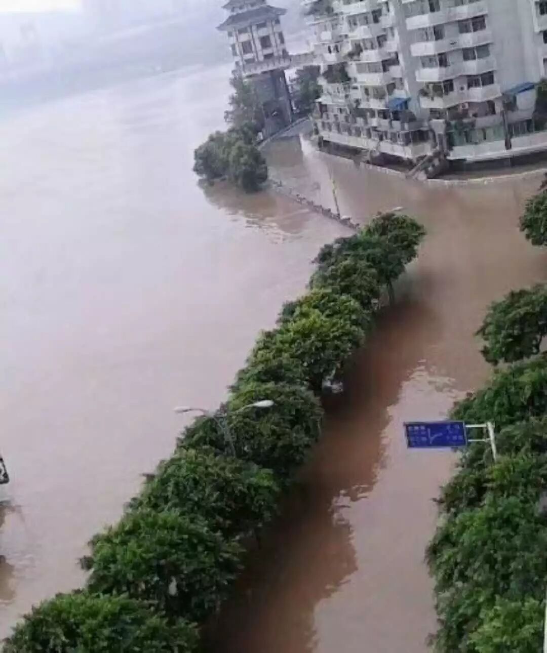 合川的滨江路被水淹没