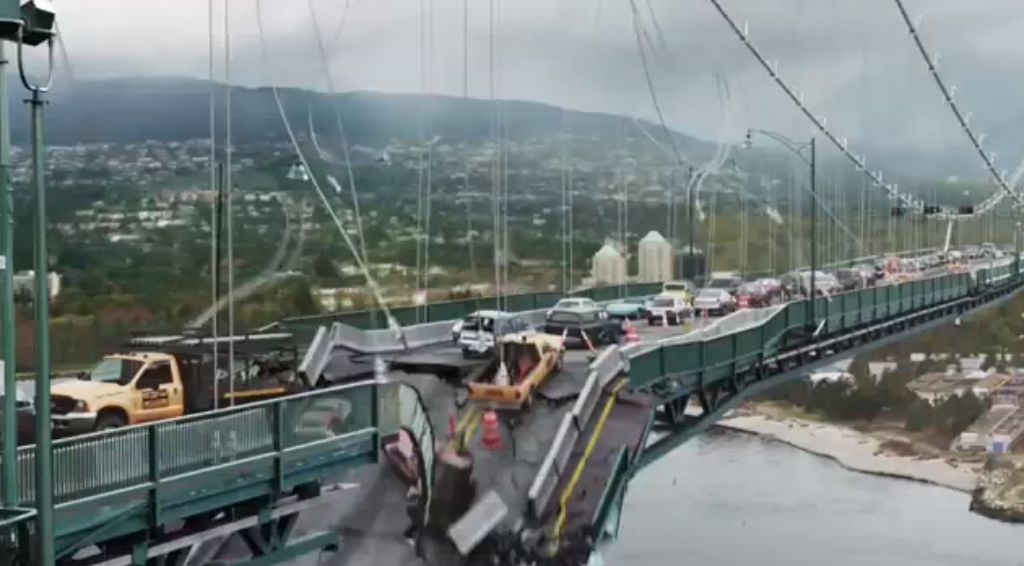 这,可不能是儿戏!试想一下,如果船顶磕碰到狮门桥……这简直是灾难片里的典型画面,谁也不想冒险。狮门大桥在海水高位时大概只能通过65米的船,这艘75米的Norwegian Bliss显然是会撞桥的。