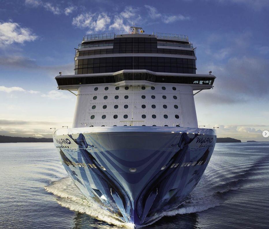 它行驶在阿拉斯加时的照片,第一眼看,感觉这船都快和山差不多高了……