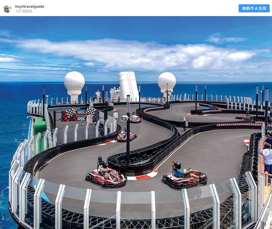 法拉利赞助的邮轮卡丁车赛道!天哪,在船顶上开赛车,旁边就是茫茫大海。这体验,恐怕孩子们要乐开了花!