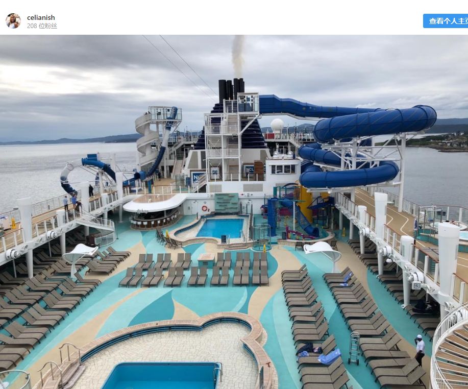 呃,颇感无奈的是:这艘游艇里的设备只有游艇上的乘客才能使用,作为围观群众,我们还是就围观围观它的外观就行!毕竟,这么大的邮轮,即便不能坐一坐,也要“刷刷存在感”的吧?