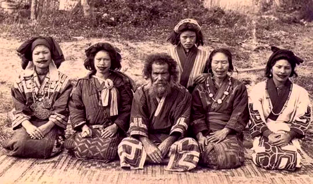 阿伊努人在日本北海道一带,他们的长相就与大和人有着明显的不同,眉框之间显得格外粗大,更像是蒙古人种。