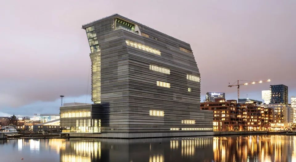 挪威人与自然“亲密无间”惯了,很多人想搬进森林里。 木巢树屋位于奥达镇附近的一处森林中,由建筑事务所Helen&Hard设计,在地面上方6米处,木屋整体靠着一棵松树的主干支撑起来,再借力钢管加固。 方寸间的小屋,也将观光、卧室、浴室和厨房功能一并纳入。从这里,人们眺望和体验穿过树林的壮丽景色,一直到哈当厄尔峡湾下面,还有远处的群山。 在Yilei看来,“树屋本身的这个仿空间,是一个很私密的空间,它非常小,非常简单,每个个体的感受可能是不同的,是很挪威的一个体验。” 2021年年底,蒙克博物馆正式开放。13层高的蒙克博物馆,是特别为艺术和文化设计的沉浸式体验。展厅供4500平方米,常设展览有超过200件蒙克的作品。 正如艺术史学家Nikita Mathias说得那样,“蒙克博物馆的建成花了10多年的时间,有些人喜欢它,有些人不喜欢它,但我认为它是人们会讨论的建筑,对我们来说真正重要的,是人们进入建筑时的体验,人们在展览空间内的体验。” 早在拿到蒙克博物馆设计权时,西班牙建筑公司Estudio Herreros就充分考虑了爱德华·蒙克本人和峡湾之于这座城市的意义,随即将设计理念定位“‘峡湾城市’的创造”(creation of the‘Fjord City')。 首席建筑师Juan Herreros表示:“建筑就在那里,它有一种强大的存在感,是城市的一部分。它说:好,我在这里。我拥有挪威历史上最重要的艺术家的遗产,我凝视着奥斯陆和峡湾,因为正是这座城市及其共同梦想塑造了我。” 这个矗立在海港区域高达60米的塔型建筑,在奥斯陆大多数低调且退隐的新建筑之中格外引人注目。