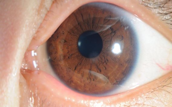 治疗后角膜溃疡愈合,留下淡淡的疤痕。