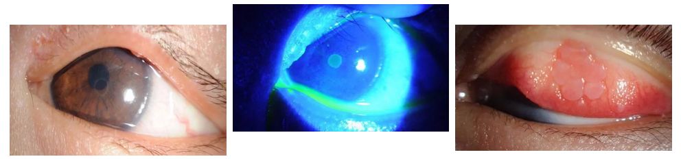 患儿治疗前角膜溃疡及结膜乳头(过敏的炎症表现)