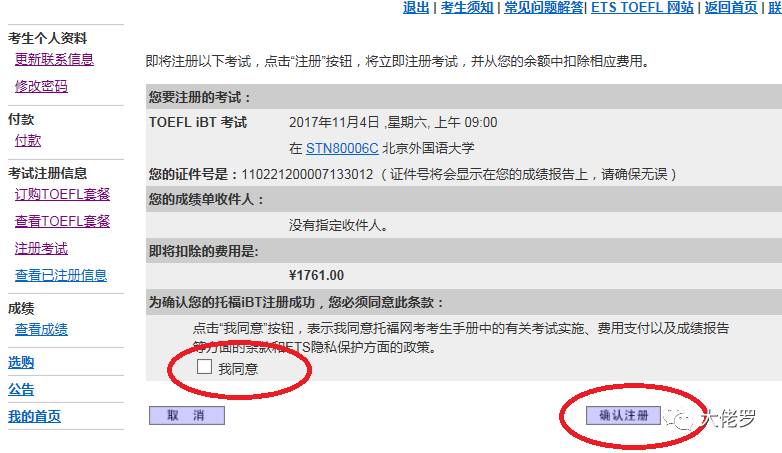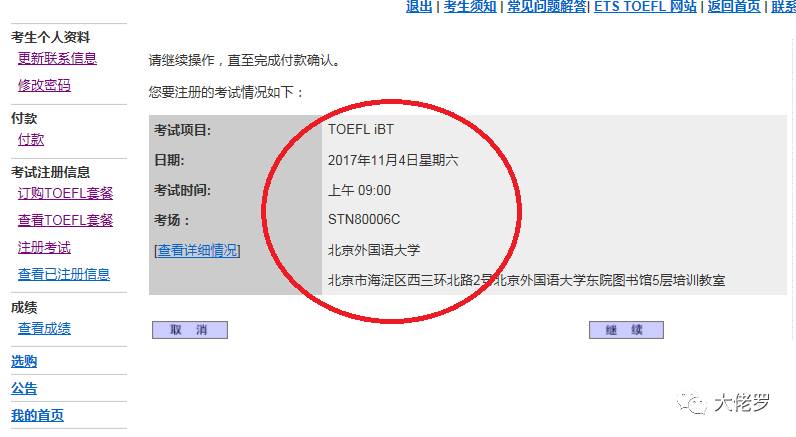 10、划重点喽!一定要确认清楚你的考试注册信息,点击“继续”