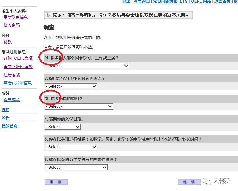 12、进入ETS调查界面。带星号属于必填项,点击“继续”
