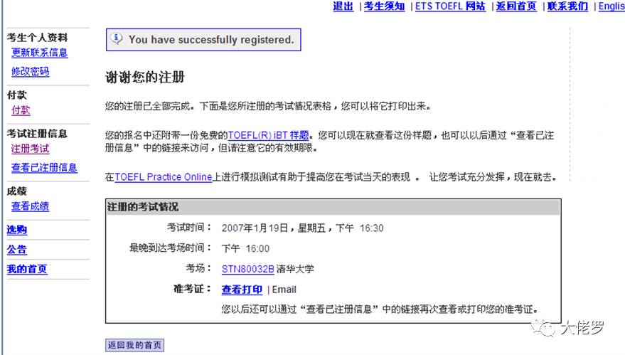 15、恭喜你,你已经成功报名了一场TOEFL考试,好好加油吧!