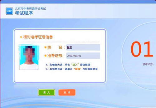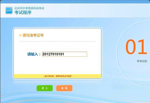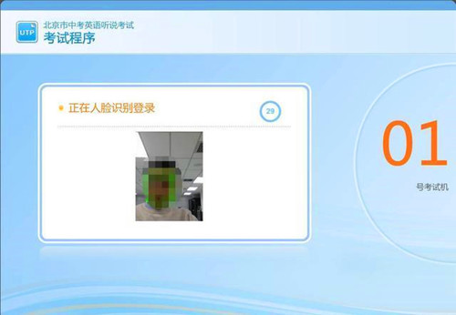 进入考场后,考生按要求进入指定座位坐下,正确佩戴耳机。系统管理员发出登录指令后,方可登录系统。登录系统有以下两种方式:人脸识别和准考证号登录