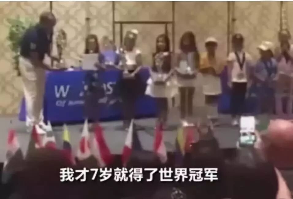 在世界之星青少年高尔夫锦标赛,刘宇婕小朋友喜提世界冠军,并用流利英语发表获奖感言。