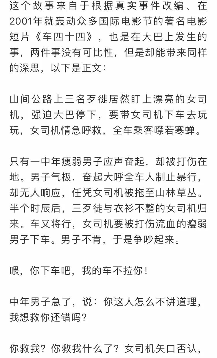 另外值得思考的是,肇事乘客与司机争吵了五六分钟之多,当时在车上这么多乘客,为什么没有人制止这场互殴呢?