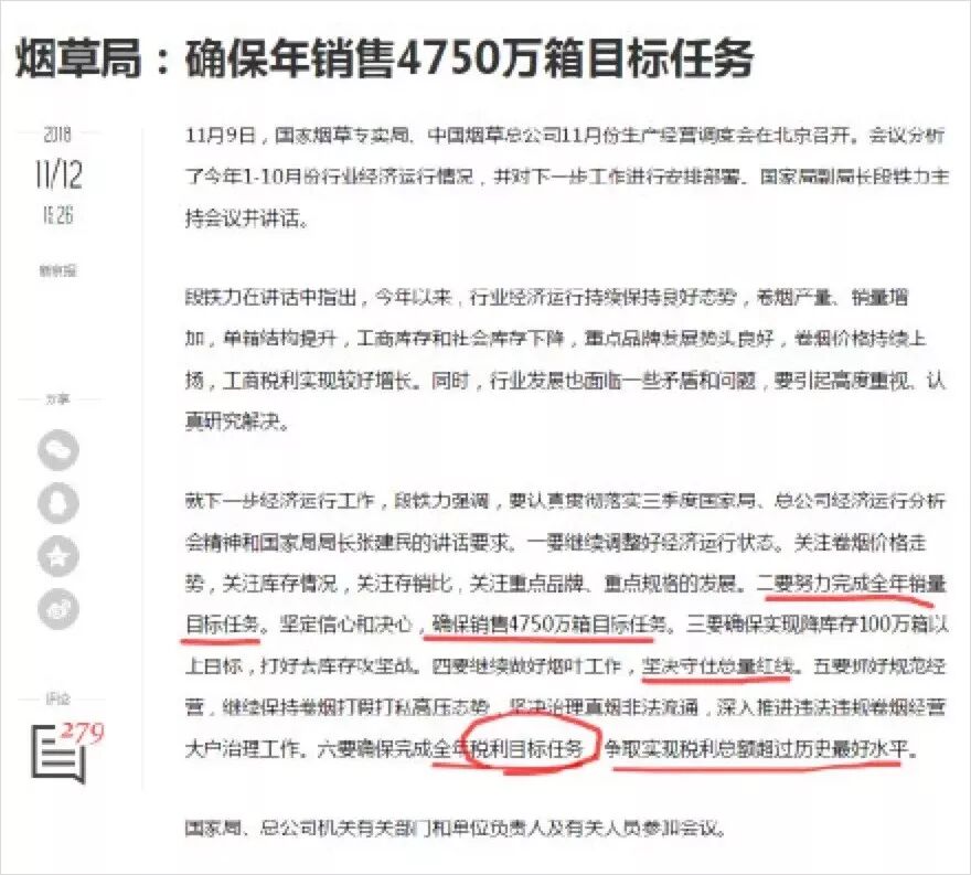 真的无语,还制定了销售目标,守住总量红线,确保完成税利目标......难道不是该减少烟草总量吗?