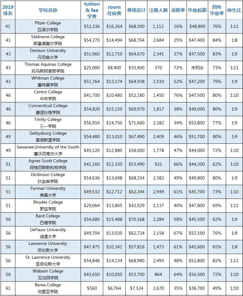 (排名前41-60文理学院招生信息,点击查看大图)