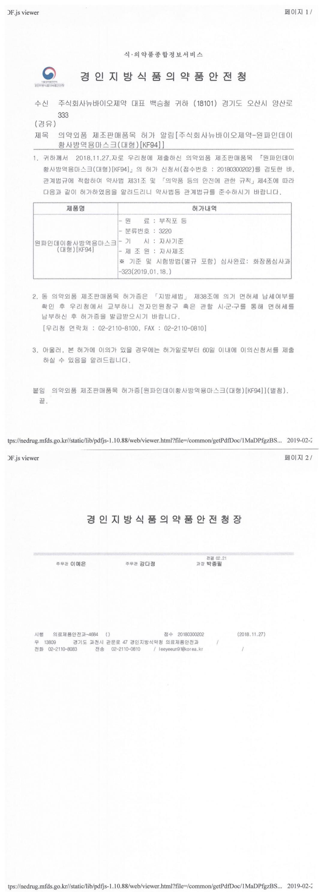捐赠口罩的韩国KF94标准的认证书,武汉疫区的百姓们可以放心使用: