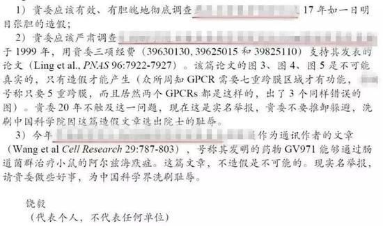 去年11月,饶毅又发文实名举报三名科研人员学术造假。