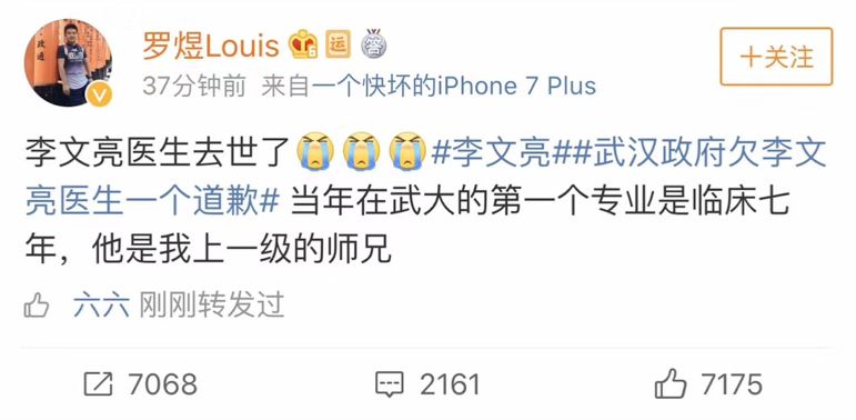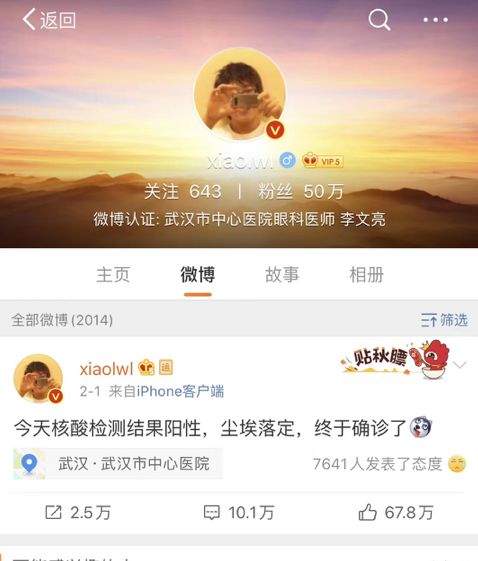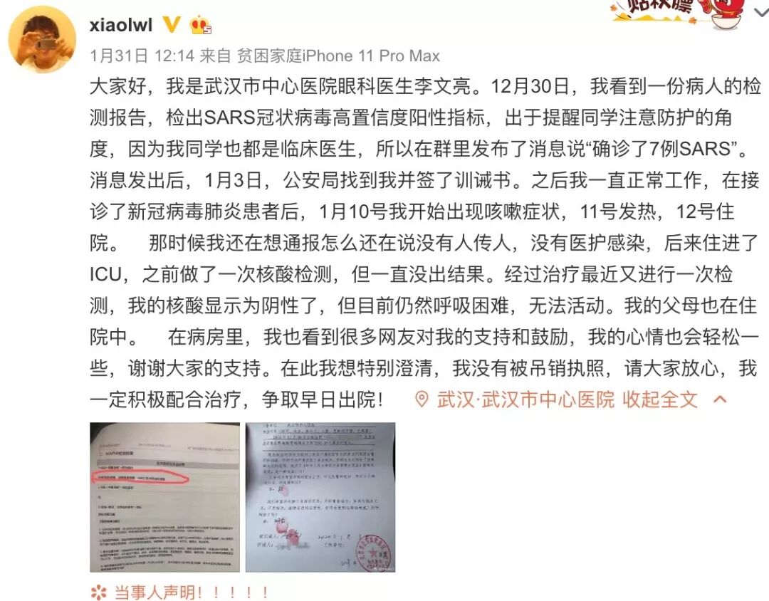 就在几天前,李文亮医生在自己微博上称自己已经确认感染了