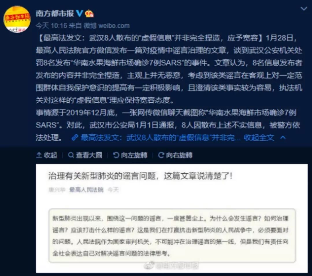 身在院线岗位,本来就能获取更多病疫信息。退一步说,如果大部分民众一开始就获知当初的“造谣者”是在岗医生,“谣言”应该也会产生更多的威信力。