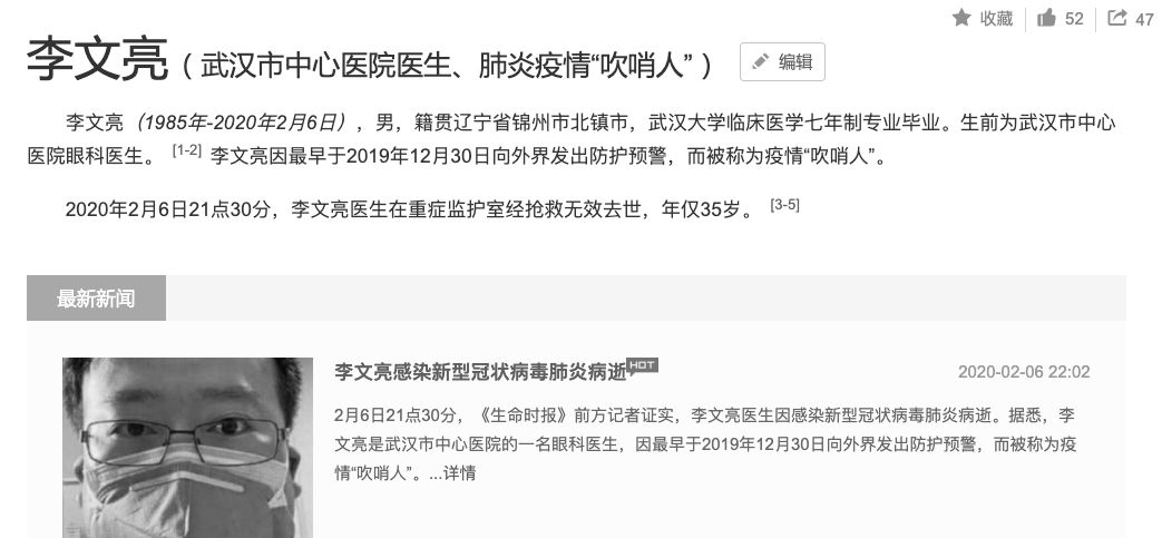 其中一名叫李文亮的医生于今日抢救无效,已经逝世。