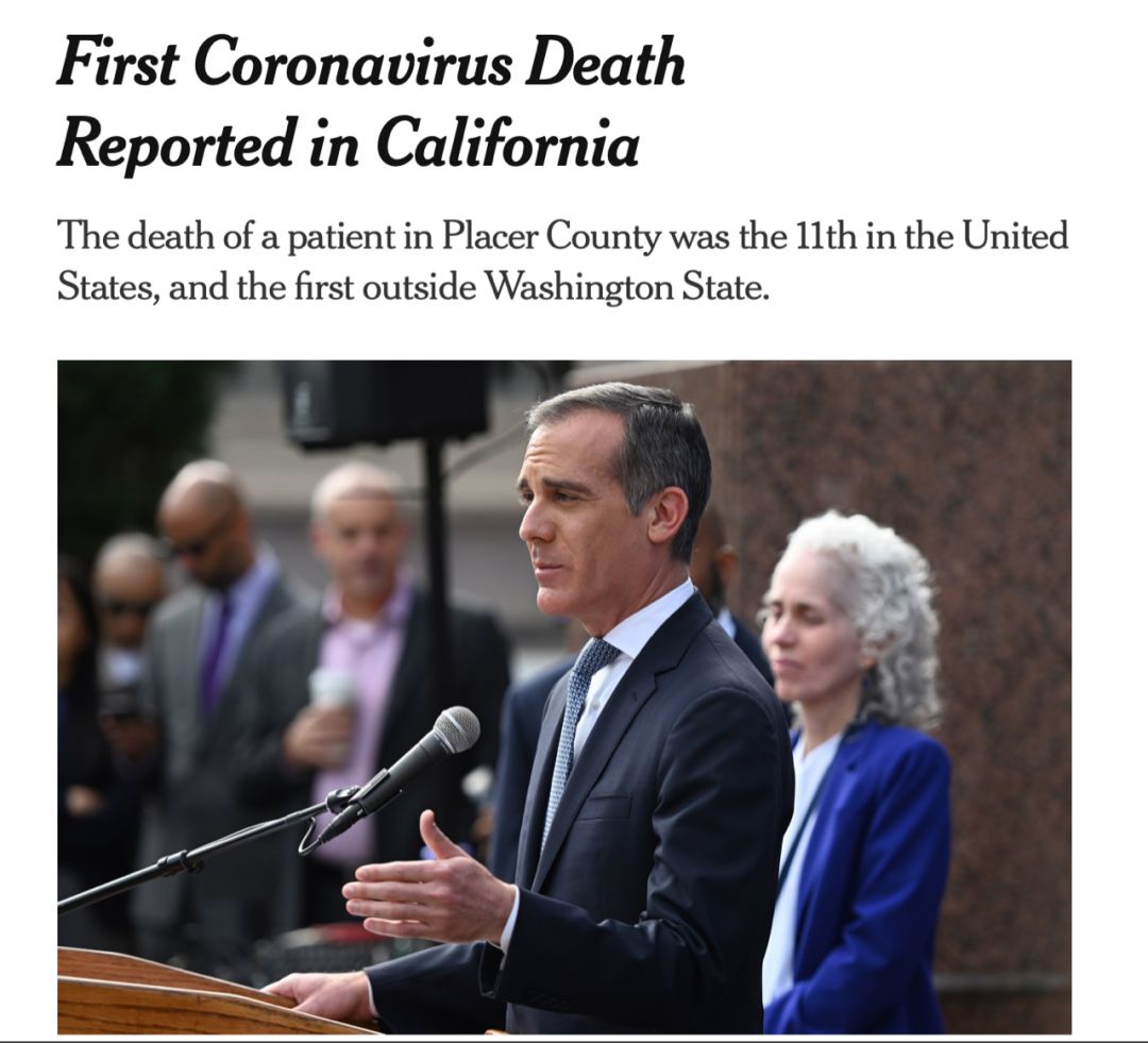 加州出现首例死亡病例,洛杉矶宣布进入紧急状态