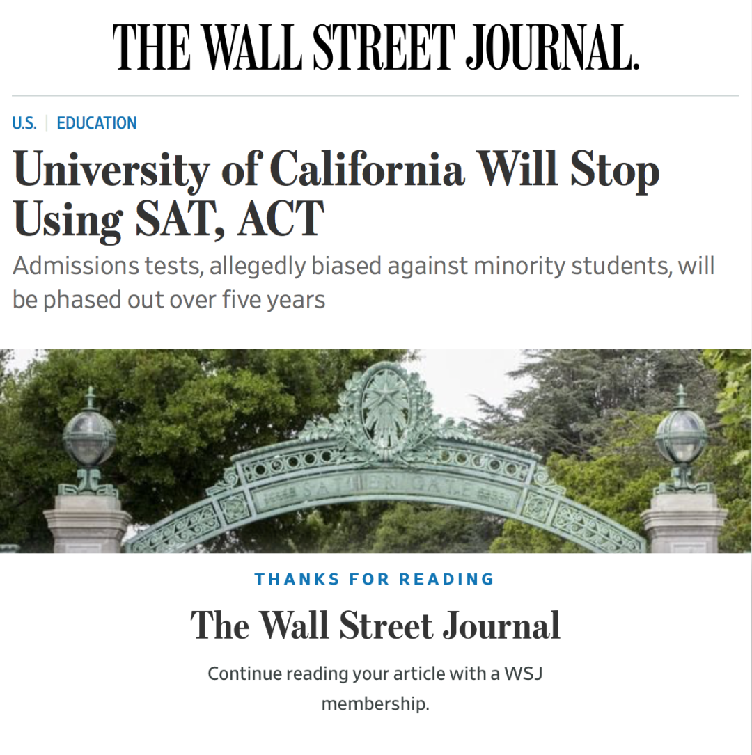 但是,就在今天,北京时间5月22日凌晨,加州大学系统又曝出一则重磅消息:加州大学将在五年内逐步淘汰SAT/ACT作为录取标准,并将在五年后推出UC系统单独的入学考试作为新的录取标准。