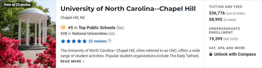 同时也要注意,近两年随着竞争越来越激烈,由于种种原因导致顶尖公立大学越来越难申请前三十公立大学越来越难进入,对国际生的名额也有限,比如密歇根大学安娜堡,学校今年虽然学校目前并未公布任何数据,但据各平台统计的数据,SAT 1500+,托福110+的学生被defer也属正常了;再比如北卡教堂山分校,对中国学生录取一直都是不是很多,今年大陆offer 像比去年更少。