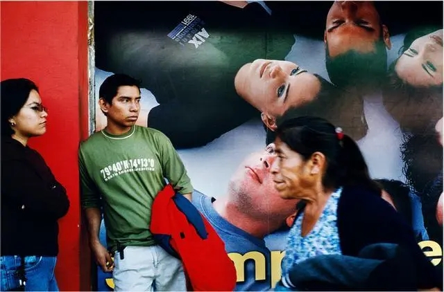 AlexWebb (画面中的人物和墙上的广告共同组成的有趣构图)