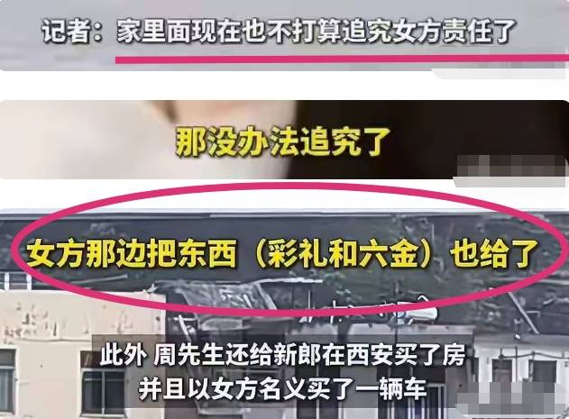 而女方,也把新郎家给的彩礼和六金都退回来了。