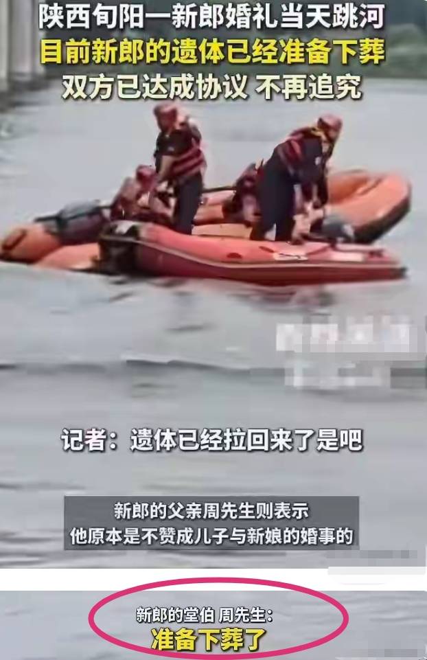 新郎下车前留下一句“我从来没有受过这么大的委屈,这个婚我不结了!”便转身冲向了旬河。