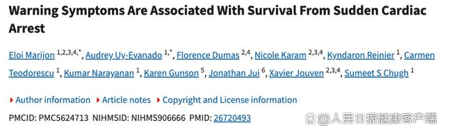 2016《内科学年鉴》刊发的一篇文章,首次大规模证实心脏骤停前存在可识别的预警症状,打破了“猝死毫无征兆”的传统认知。研究纳入的839名心脏骤停患者中,430名有先兆症状,占51%,主要为:胸痛、呼吸困难、头晕。