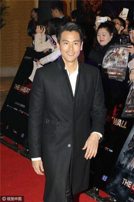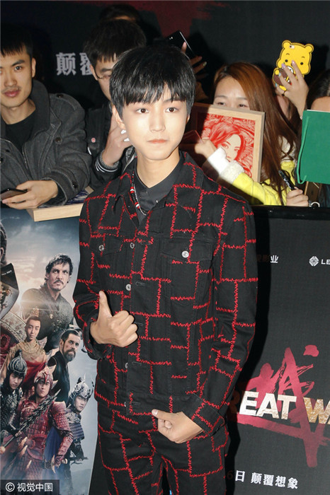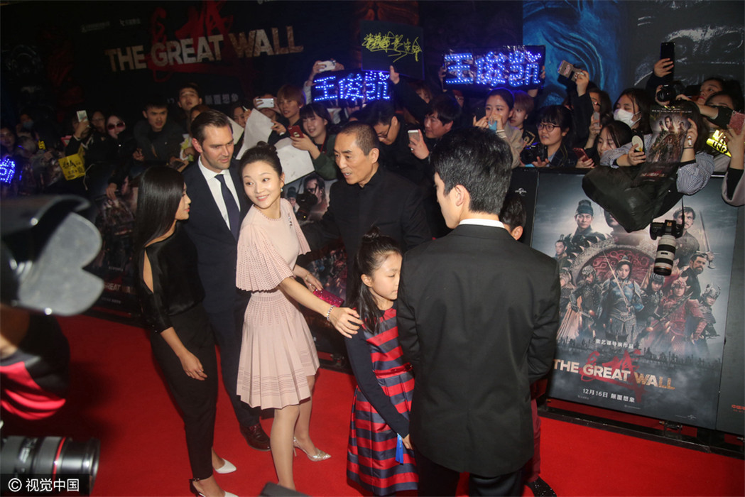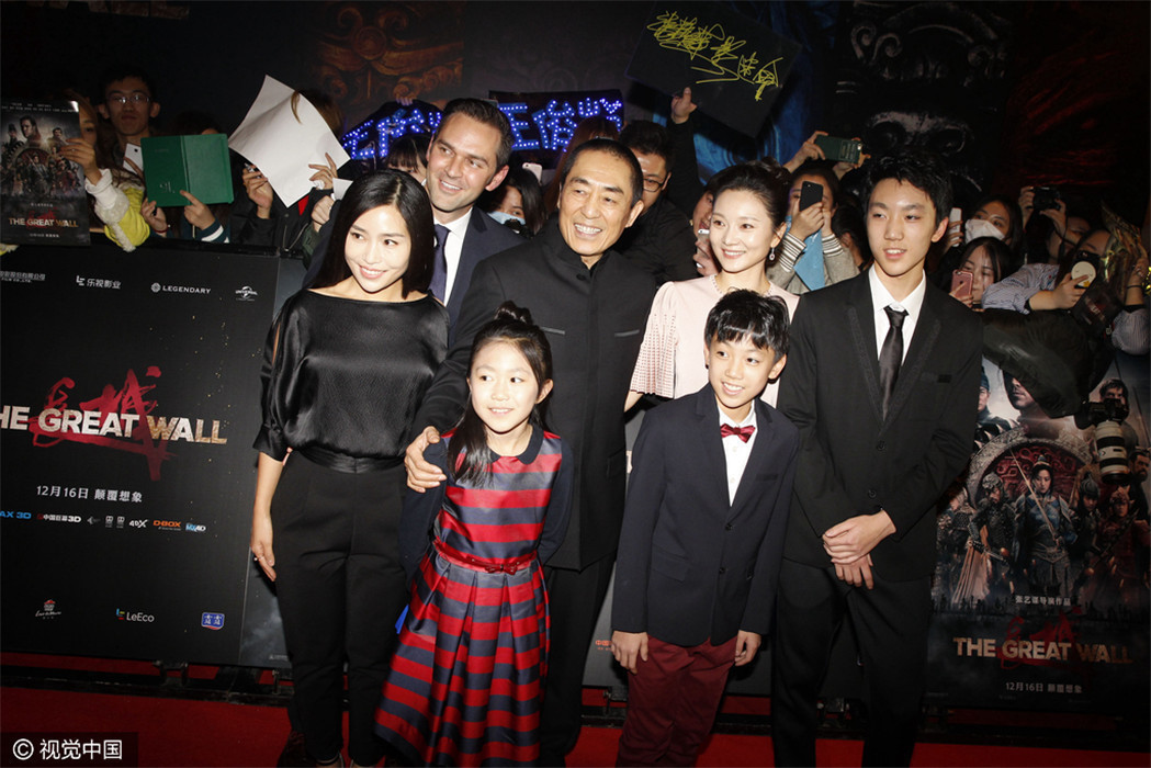 12月6日,张艺谋执导电影在北京举行首映发布会红毯,导演张艺谋携马特·达蒙(Matt Damon)、景甜、佩德罗·帕斯卡(Pedro Pascal)、刘德华、威廉·达福、张涵予、 鹿晗、彭于晏 、林更新、郑恺、黄轩、陈学冬、王俊凯等众主创亮相。张艺谋全家也罕见同框亮相支持。张艺谋与前妻所生大女儿也现身撑场(二排左一)。