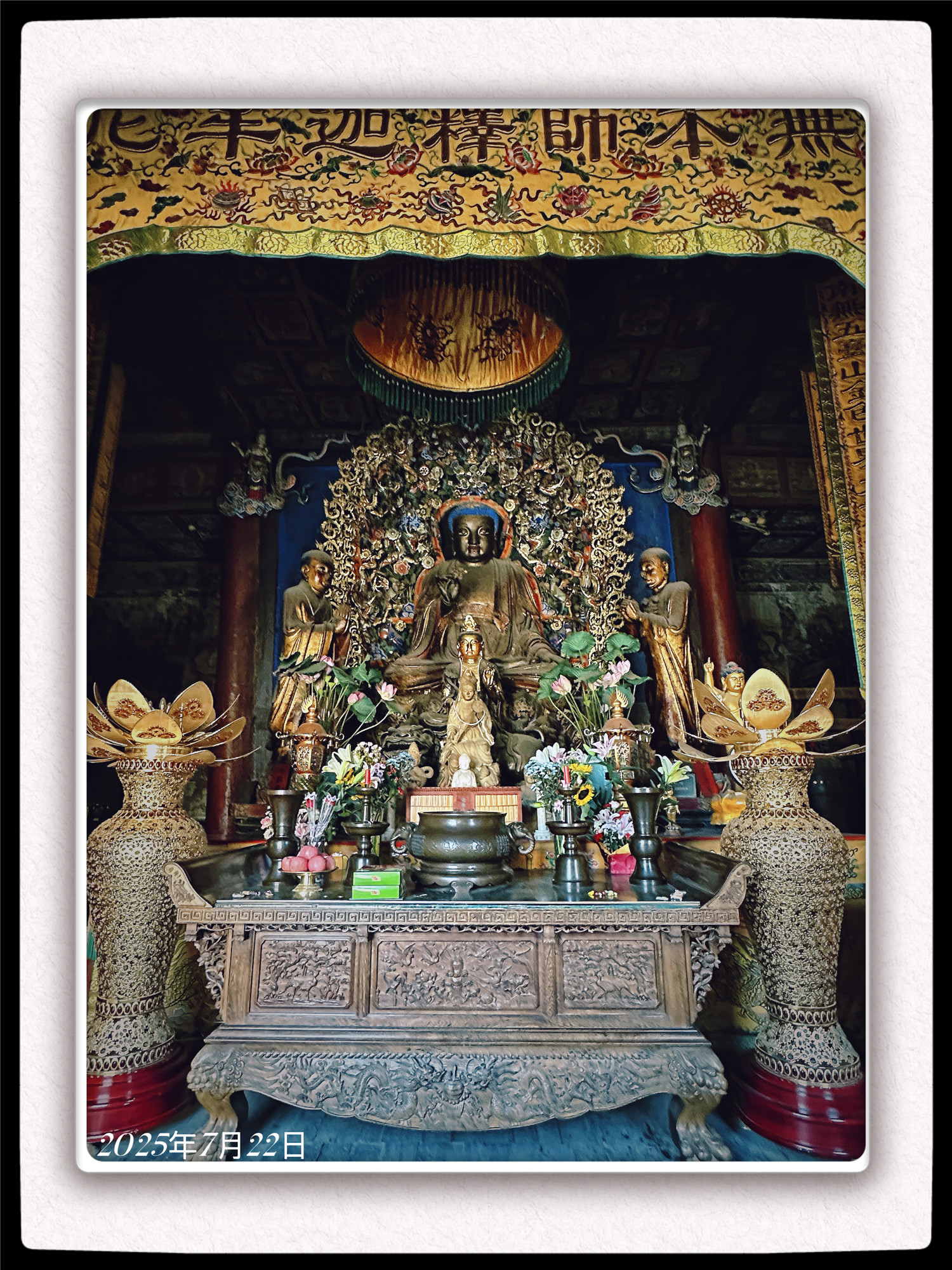 所以,过去“五爷”年年都有几次被抬出去降雨的事情。为供奉和迎送方便,后来就在台怀万佛阁内建了一座龙王殿,把北台顶广济龙王殿的“五爷”请到台怀,供在了万佛阁的龙王殿里,万佛阁因之被俗称为五爷庙。据说,很灵。。。。。。心诚则灵![]()