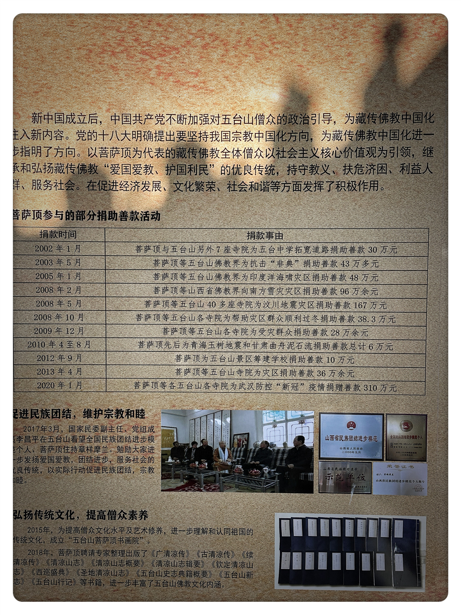 五台山佛教兼容并包,诸宗并盛,诸法共传,汉藏佛教汇一山,佛儒道教融五峰,“是中国文化的缩影”。