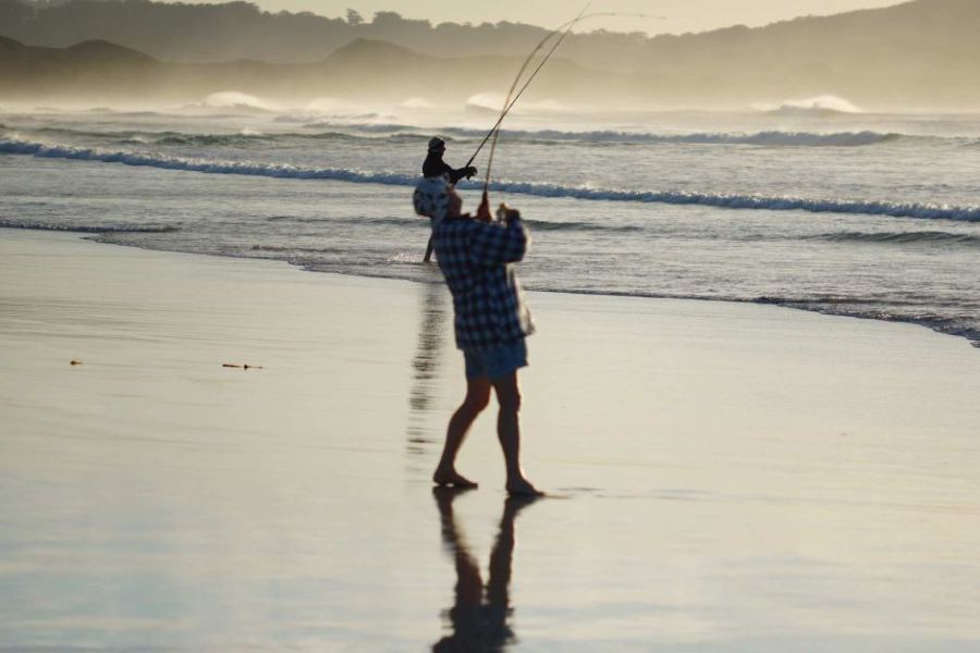 西澳渔业发展局目前正在致力于让野生三文鱼走进人们的餐桌,他们已经试行了在小学推广这种未得到充分利用的鱼类,教育学生接受三文鱼。学吃、学做三文鱼,要从娃娃抓起!图为海滩上的钓鱼者。(来源:北京时间)