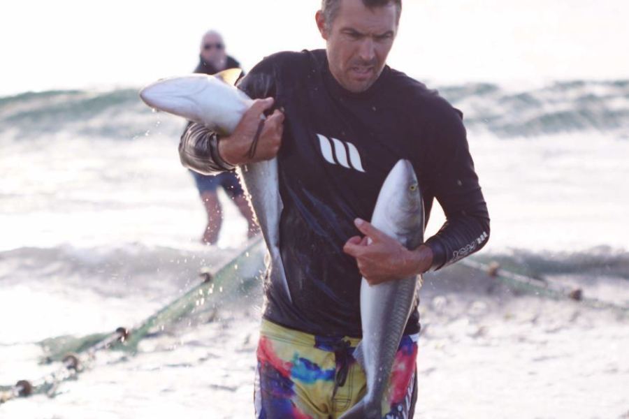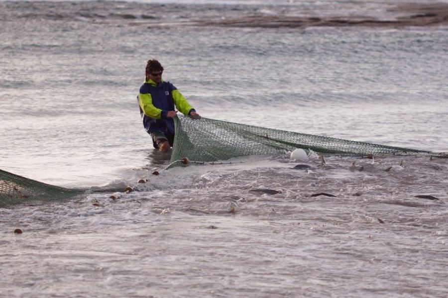 Parry Beach的渔民这段时间都愁坏了,这种野生三文鱼和现在澳洲市场上卖的养殖三文鱼不同,由于澳洲人不会烹饪,所以根本没人吃这种野生三文鱼。图为一男子手拿两条野生三文鱼。